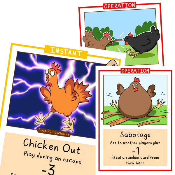 Sabotage other players to prevent them from escaping their chickens first.
